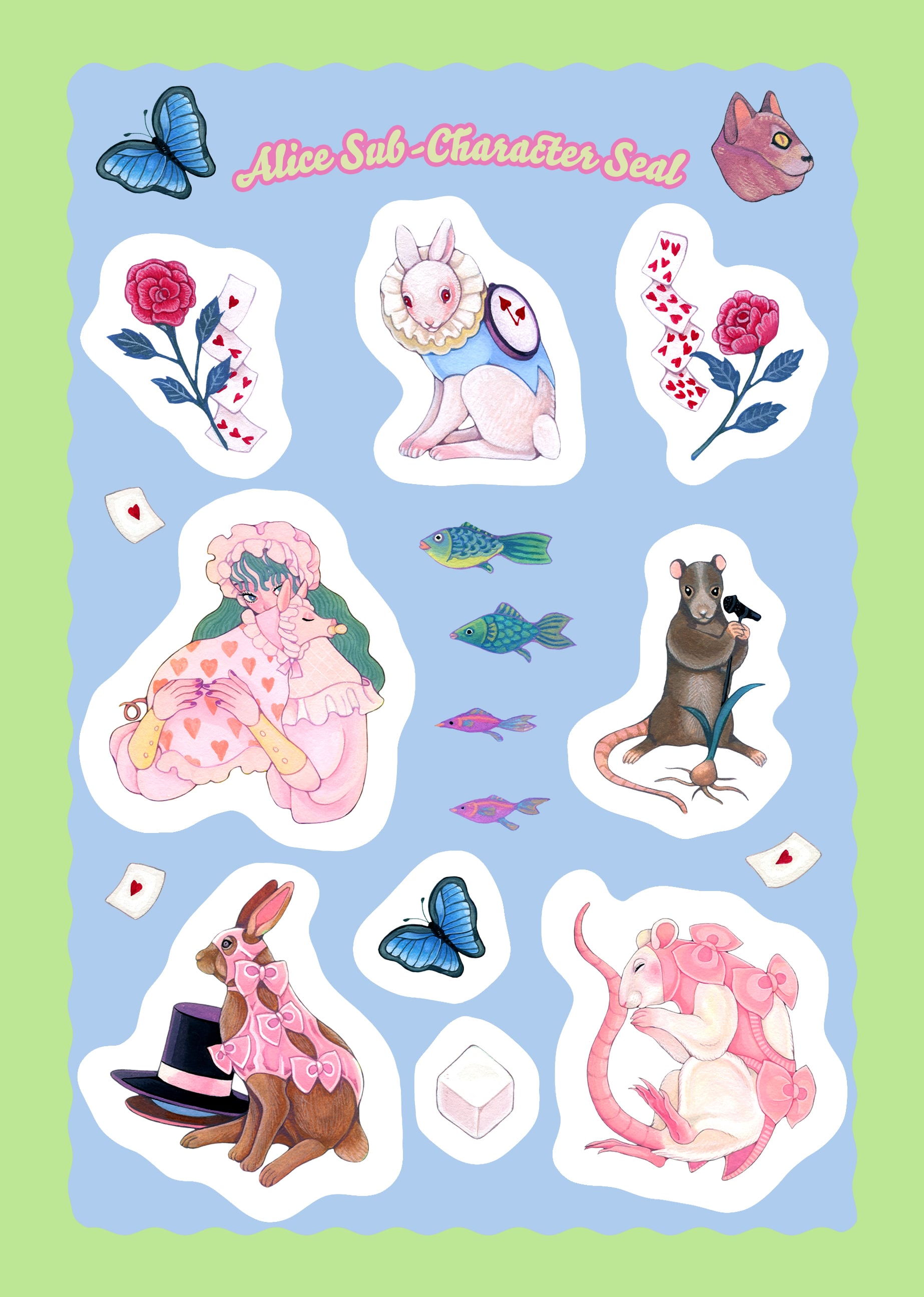 アリスのサブキャラクター&犬のトランプクリアシール セット